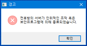 만약 서비스가 강제로 닫혔거나 인위적으로 종료될 경우 위와 같은 메세지가 뜨게 됩니다.